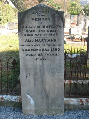 At about this time, William Barley changed his and his family's name to Barlow. Many former convicts made a change to the spelling of their surnames, usually to help them make a fresh start.