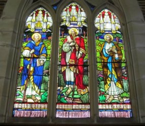 Leadlight window in St Alban's, Five Dock, dedicated to John and